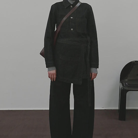 Raw denim apron mini jupe raw black denim